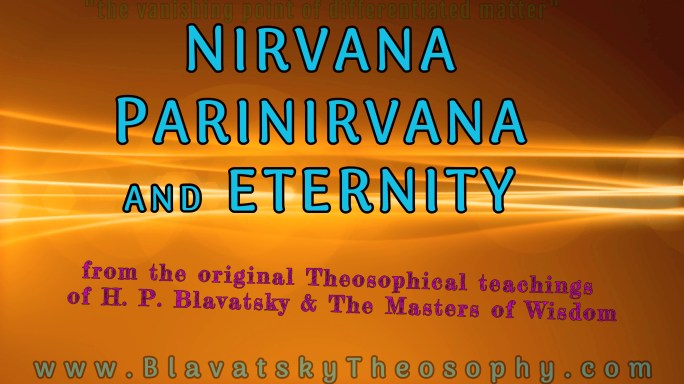 In an article titled “World-Improvement or World-Deliverance” HPB describes the known Buddhist definitions and explanations of the terms “Nirvana” and “Parinirvana” as “an exoteric and frequent mistake” and proceeds to explain, “Nirvana may be reached during man’s life, and after his death in the Manvantara or life-kalpa he belongs to. Paranirvana (“beyond” Nirvana) is reached only when the Manvantara has closed and during the “night” of the Universe or Pralaya. Such is the esoteric teaching.”
