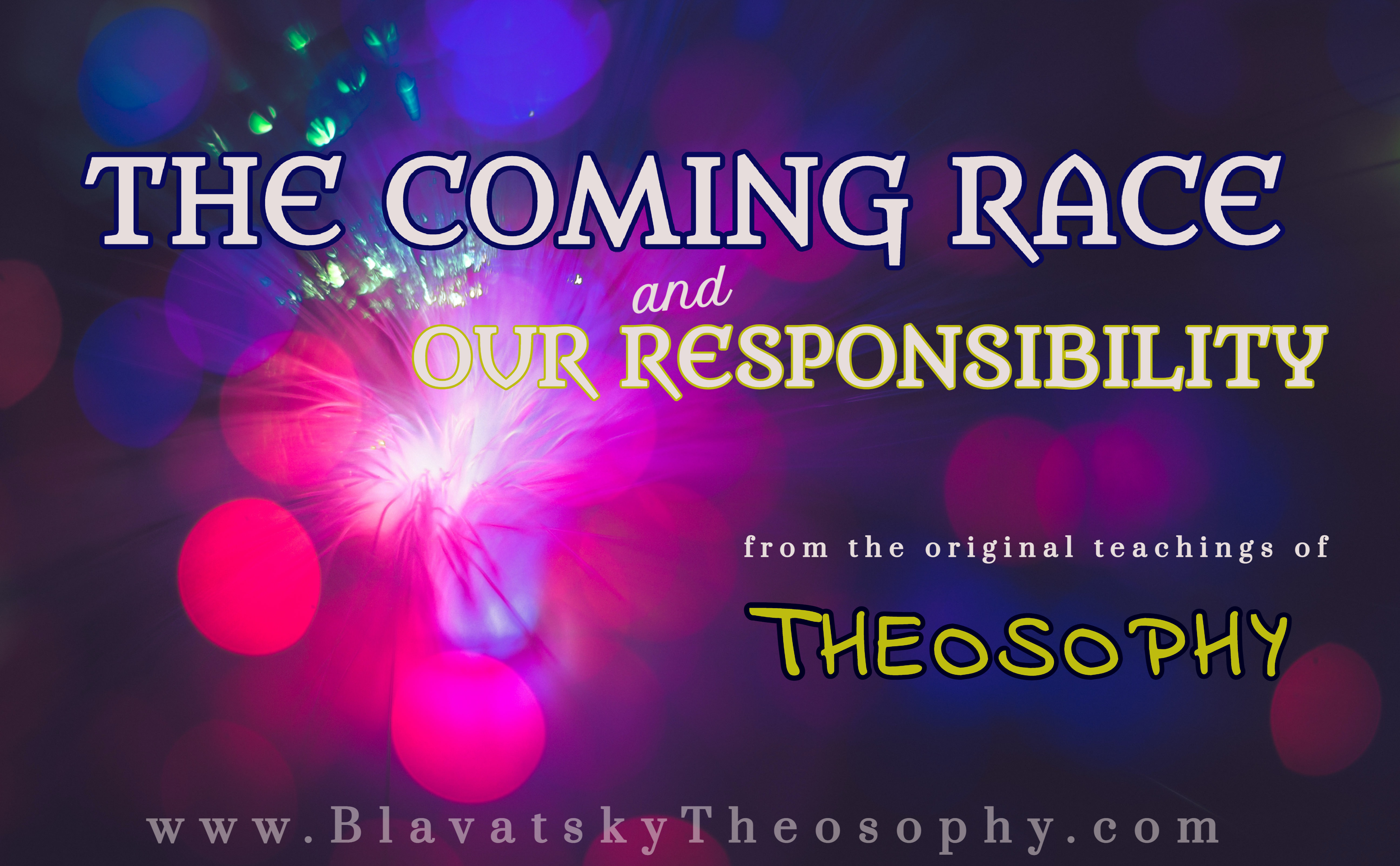 “Consideration along these lines brings us to a sense of our responsibility as to the coming race. Whatever is to be in the future depends on us. It will not change unless we change it. We have to set the lines right so that others may follow, on the right basis. We have to forget personality, selfishness, separateness, and realize that each one of us must work for the good of all, must see all beings as one great whole, all beings of every kind working together from the same nature in the same direction, but differing in their degrees.”