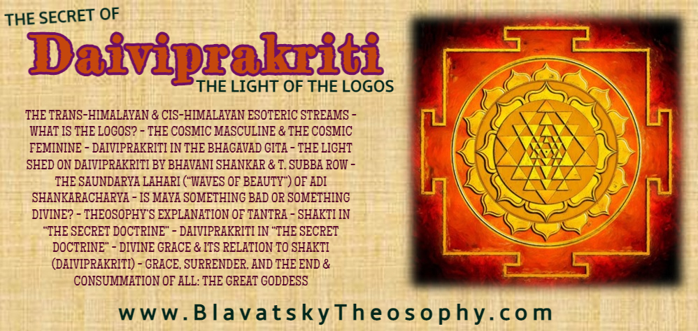 This should all now confirm what we said near the start of this article: “This then leads us to the “secret” of what Daiviprakriti actually is: the Shakti of Ishwara (the Logos). The Logos and the Light of the Logos are . . . the divine masculine and divine feminine two-in-one Presence and Power that originates, sustains, and enlivens this Universe and everything in it. If we understand this correctly, we see that the Logos and Light of the Logos are in fact “He” and “She,” provided that we don’t anthropomorphise this in an unphilosophical manner. But to think or speak of both Ishwara and Daiviprakriti as “it” obscures the whole matter and is perhaps why the majority of Theosophists are still seemingly uncertain as to what Daiviprakriti actually is. The very term “Daivi Prakriti” is linguistically feminine throughout and whenever you see Sanskrit terms such as “Prakriti,” “Shakti,” “Maya,” “Devi” etc., in whatever context, these are all linguistically feminine, arising from the fact that what they are really pointing to (and ultimately they are all synonymous with Daiviprakriti, the Light of the Logos) is of a feminine nature, not masculine (Ishwara, on the other hand, is a masculine term) and not neuter.”
