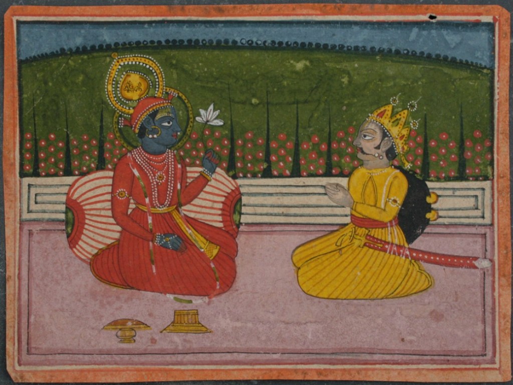 Bhavani Shankar mentions it further: “By self-surrender and renunciation, aided by supreme devotion, the aspirant gets illumination with the help of the Guru and the compassion of Bhagavan, and reaches the goal. In the case of Arjuna, however, Bhagavan was the Guru as well as the Lord. But remember that both are necessary, viz., the Prasad [i.e. grace] of the Guru and Divine Grace, and the one cannot be secured without the other. For, says Yoga Vasishtha: “So long as the compassion of Parameshwara (the great Lord) is not secured by complete devotion, one does not get the real Guru and the true Shastra (Teaching).”” (p. 94)