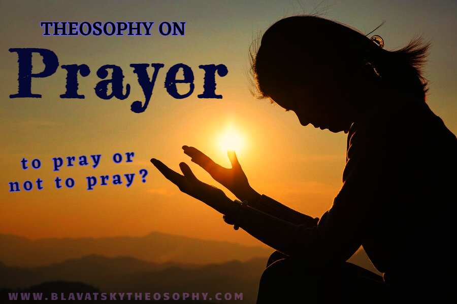 There is not just one single thing called prayer. We would suggest that there are three main forms of prayer, namely petitionary prayer (i.e. asking the Divine or any other unseen entity to do something, whether spiritual or material, for either ourselves or others), prayer as a vocalised or verbalised expression of inner aspiration, devotion, or gratitude and thanksgiving, and the mysterious occult type of prayer which Theosophy calls “Will-Prayer.” It is the first of these which Theosophy is generally opposed to. As to the second and third categories, it considers these perfectly right and good, provided that the motives involved are pure and unselfish.